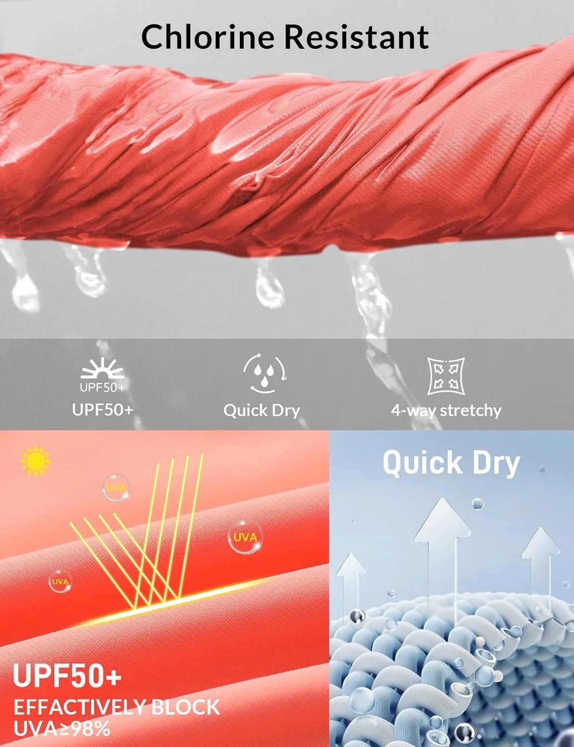 Quick Drying & Lightweight: Stretchy board shorts provide UPF 50+ sun protection,chlorine resistant and fast-drying that helps dry the shorts quickly by absorbing water.