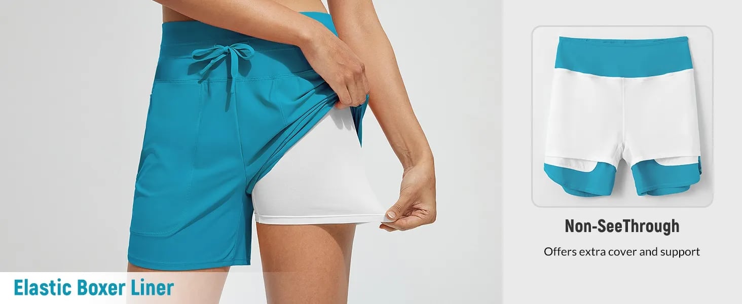 Built-in Boxer Liner: Upgrade liner that prevents your skin from scratch,no thigh rub and non-see through,the length is perfect and fit great for an active day at the beach.